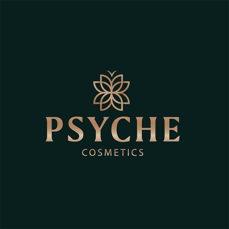 Psyché est souvent décrite comme ayant des ailes de papillon. Connue comme la déesse de l'âme, Psyché est un personnage célèbre de la mythologie grecque. Ainsi, le logo papillon de Psyche Cosmetics respire la beauté et l'élégance, ce qui est le but ultime d'une marque de cosmétiques. Le logo et les textes dorés métallisés se détachent sur un fond vert foncé. Lorsque vous recherchez un logo de marque de cosmétiques élégant, ce design en est un excellent exemple.