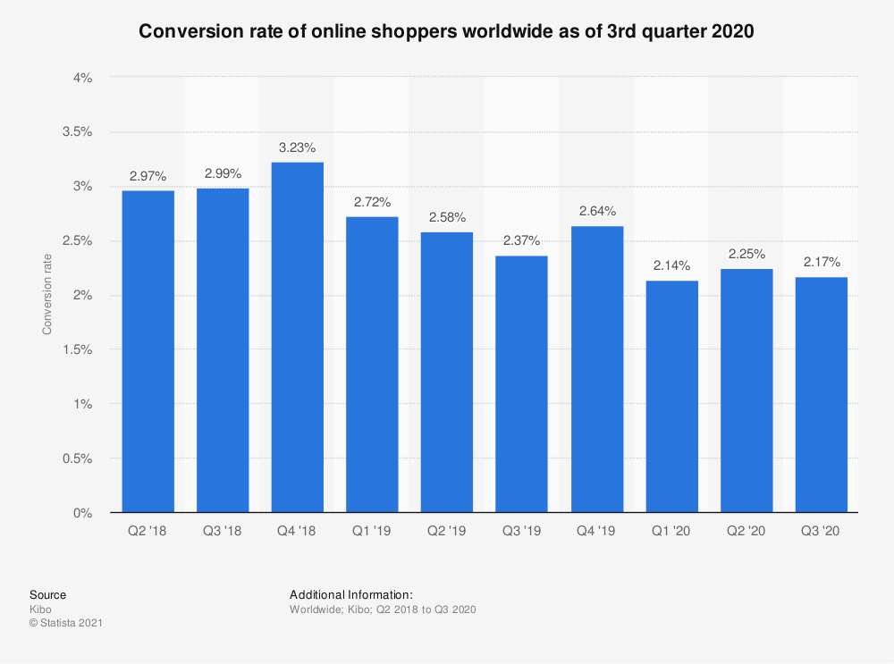 Les taux de conversion moyens du commerce électronique chutent d'environ 2 % à 4 %.