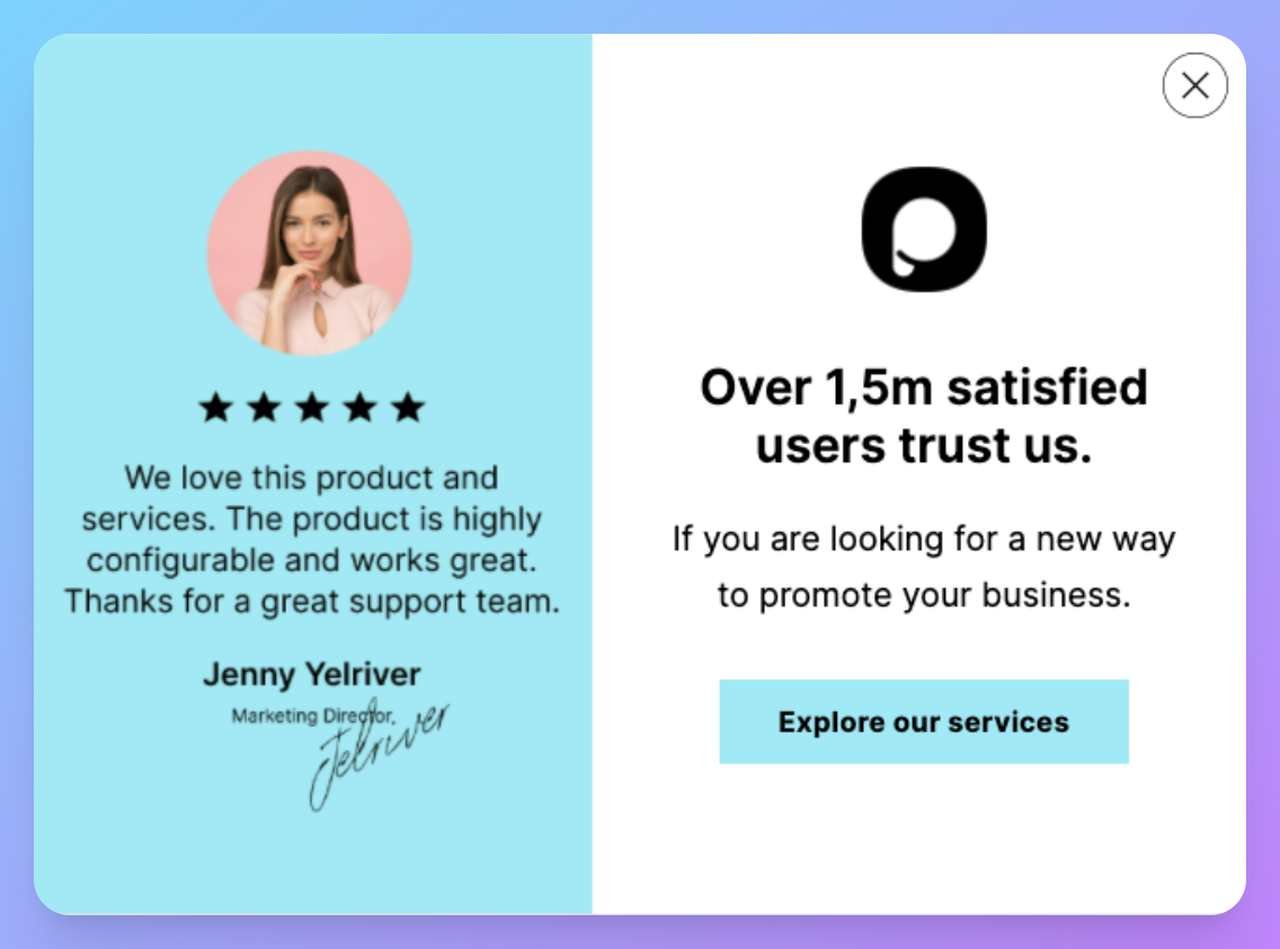 Envisagez d'aller encore plus loin et d'inclure des témoignages et des avis de clients précédents dans la fenêtre contextuelle pour renforcer la confiance avec le prospect.