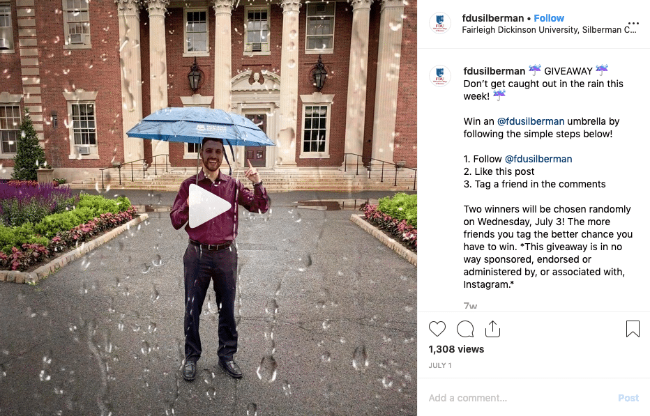 Cette stratégie marketing est presque aussi ancienne qu'Instagram seul. Ils fonctionnent extrêmement bien parce que les utilisateurs adorent concourir et aiment gagner des trucs gratuits. Il suffit d'un simple appel à l'action et d'un petit prix pour encourager vos fans à s'engager. Instagram reconnaîtra et reconnaîtra immédiatement ce type d'activité et donnera à votre compte un tout nouveau boost de chronologie.