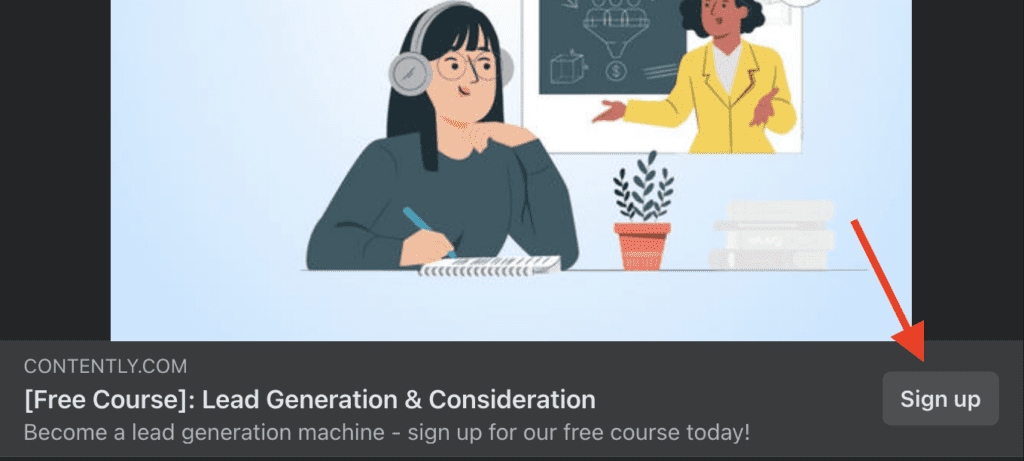 Une fois qu'un prospect potentiel a consommé votre annonce/contenu, il ne devrait y avoir aucune confusion quant à la marche à suivre. Sur la plupart des plateformes publicitaires, vous devrez insérer une URL ou une étape suivante dans le cadre de l'annonce.