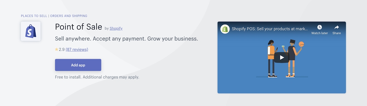 Actuellement, Shopify POS est noté 2,9 étoiles sur 5 sur l'App Store de Shopify (sur 87 avis).