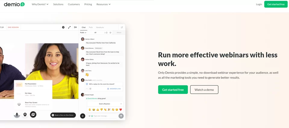 C'est là qu'interviennent les plateformes de webinaires, la plupart des plateformes de webinaires sont des produits "tout-en-un" où vous obtenez toutes les caractéristiques et fonctionnalités dont vous avez besoin en un seul endroit. Par exemple, les meilleures plateformes de webinaires permettent une communication interne facile, une interaction avec les clients, des réunions d'équipe à distance, des présentations marketing, la sensibilisation et la génération de prospects et une formation en ligne avec l'utilisation d'une présentation visuelle et audio de haute qualité.