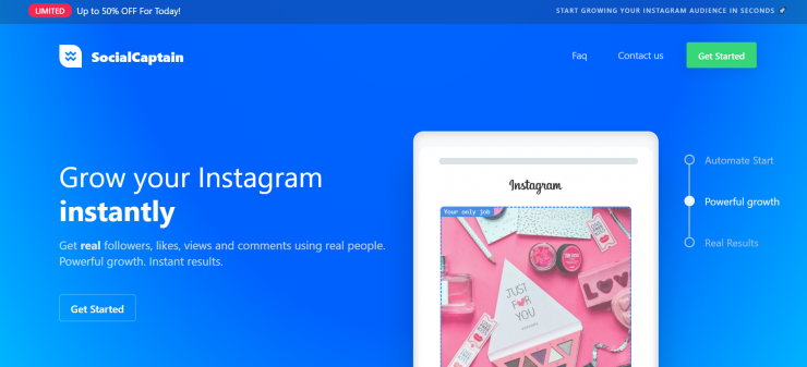 SocialCaptain promet un véritable engagement sur votre compte Instagram, bien que son site ne précise pas comment cela se produit.