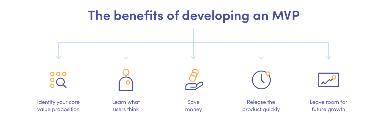 Grâce à un MVP, votre entreprise réduit le temps et le budget nécessaires pour créer un produit numérique susceptible d'échouer. De plus, en publiant votre solution plus rapidement, vous pouvez réduire les coûts de mise en œuvre, tester le marché, obtenir des commentaires précieux pour le développement futur et déterminer si des fonctionnalités supplémentaires sont nécessaires.
