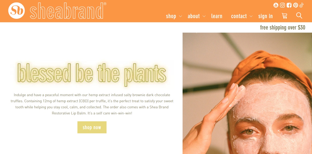 Déplacez votre souris sur n'importe quel produit de la galerie, et il affichera une superbe image d'un modèle utilisant le produit ou posant avec l'un de ses éléments à base de plantes. Cela peut contribuer à améliorer l'expérience des visiteurs qui défilent dans "l'allée" de la boutique en ligne et aider les acheteurs à s'imaginer en train d'appliquer sur leur peau les baumes et huiles essentielles de la marque. Placer « Nouvelle arrivée » au-dessus des images de la collection « Visage » peut être un autre moyen d'attirer des visiteurs Web.
