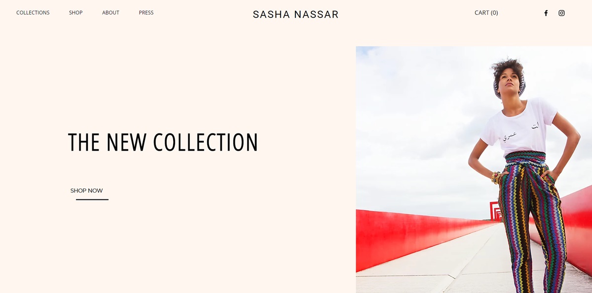 Sasha Nassar n'est pas seulement une plate-forme pour les transactions robotisées d'un marché, mais cela signifie transformer un format de commerce électronique standard en une véritable boutique en ligne. Le site livre les options esthétiques de sa créatrice de mode en montrant des photos artistiques de mannequins portant ses créations. Remplir les pages d'un site avec des images brillantes de haute qualité est important pour rendre tout ce que vous vendez exceptionnel et obtenir le même effet de conservation qu'un vrai magasin peut avoir avec ses affichages créatifs.
