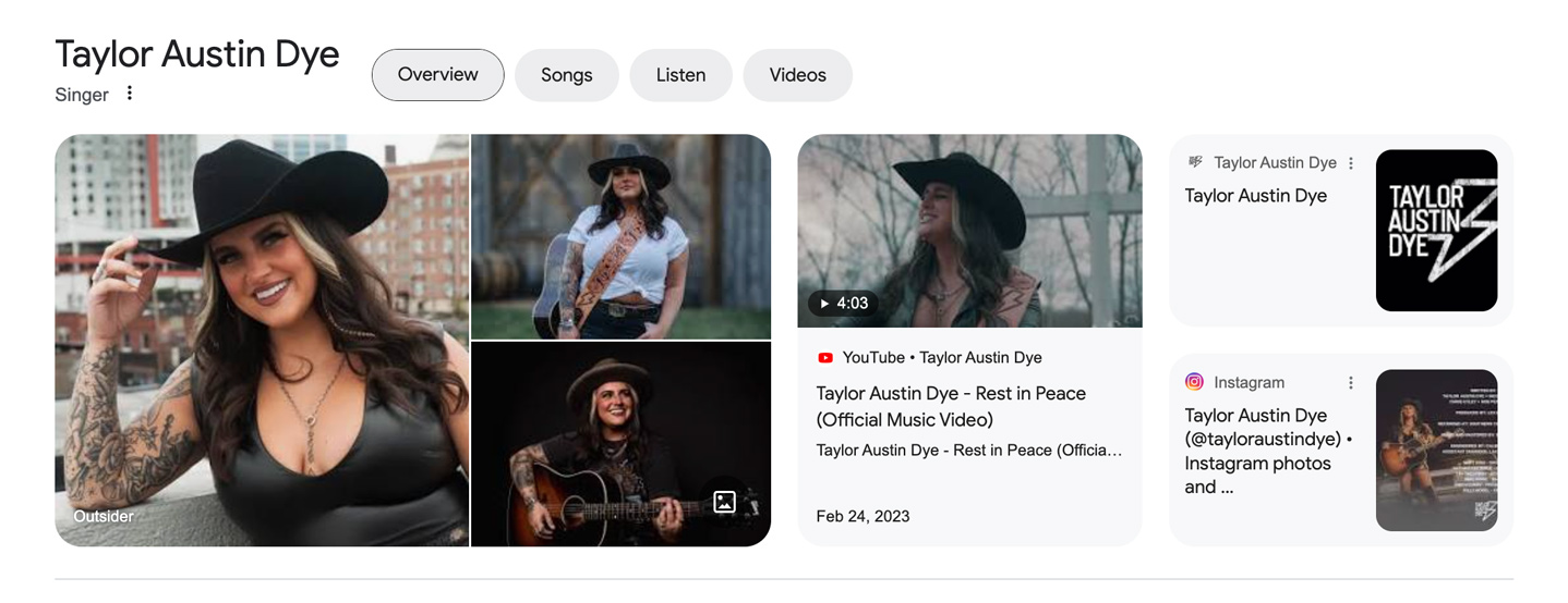 Itu akan membantu Anda mendapatkan lebih banyak gambar yang muncul di hasil pencarian Anda, seperti untuk anggota Bandzoogle Taylor Austin Dye: