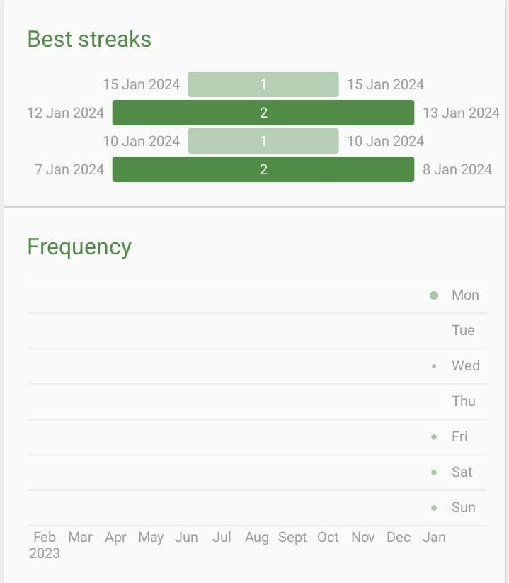 Fitur Loop yang menonjol adalah melihat coretan terbaik (atau coretan terpanjang) dan frekuensi kebiasaan yang saya lakukan. Hal ini memungkinkan saya untuk lebih memahami seberapa sering saya memeriksa ritual saya dan kebiasaan mana yang memiliki coretan terpanjang.