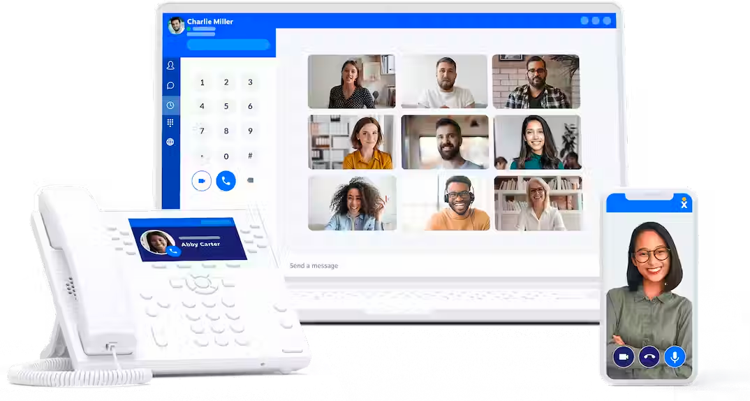 Aplikasi softphone memungkinkan karyawan Anda menerima dan melakukan panggilan bisnis melalui nomor telepon virtual di perangkat apa pun yang mendukung internet, termasuk ponsel, tablet, dan komputer.