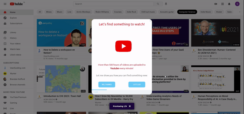 Dan UserGuiding adalah platform lengkap yang membantu Anda memberikan pengalaman Orientasi Pengguna yang mulus kepada pelanggan Anda dengan kekuatan panduan di layar.