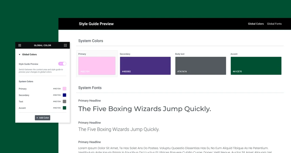 Seperti yang Anda ketahui, gaya global adalah tulang punggung sistem desain situs web Anda, memastikan penggunaan warna dan font yang konsisten di seluruh situs Anda. Fitur baru ini selangkah lebih maju, menawarkan pratinjau gaya global Anda secara real-time.