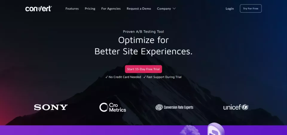 Convert adalah solusi pengujian A/B berorientasi perusahaan dengan serangkaian fitur lanjutan yang luas. Selain pengujian A/B reguler, platform ini memungkinkan Anda menguji seluruh situs web dan corong penjualan.
