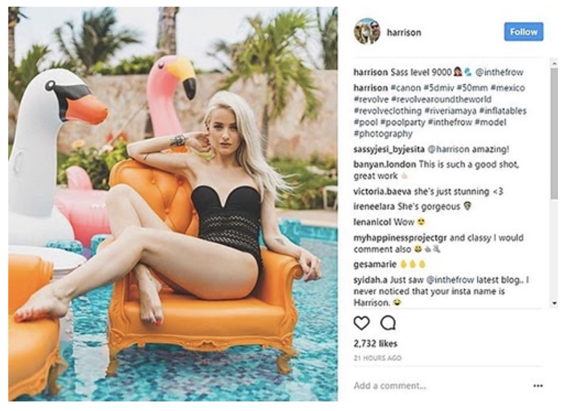 Pengecer pakaian, Revolve, telah secara aktif menggunakan pemasaran influencer untuk branding media sosial mereka. Di masa lalu, mereka bekerja dengan blogger kecantikan seperti Fleur de Force dan In the Frow untuk menjangkau audiens yang lebih luas. Mereka terlihat mengenakan pakaian Revolve dan merinci fitur-fitur menonjol di halaman media sosial mereka.