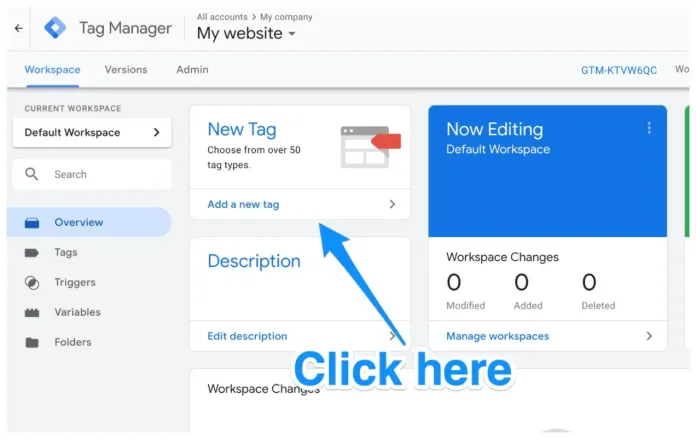 Kunjungi dasbor Google Pengelola Tag Anda dan klik tombol Tambahkan tag yang ada .