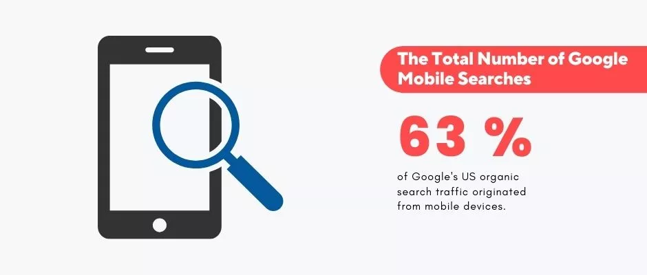 La ricerca su Google non fa eccezione alla crescente popolarità dei dispositivi mobili. Ecco perché Google dà la priorità alle ricerche sui dispositivi mobili. Quando osserviamo la quantità di ricerche Google per dispositivo, vediamo che i dispositivi mobili hanno rappresentato il 63% del traffico di ricerca organica di Google negli Stati Uniti. (Merkleinc, 2019).