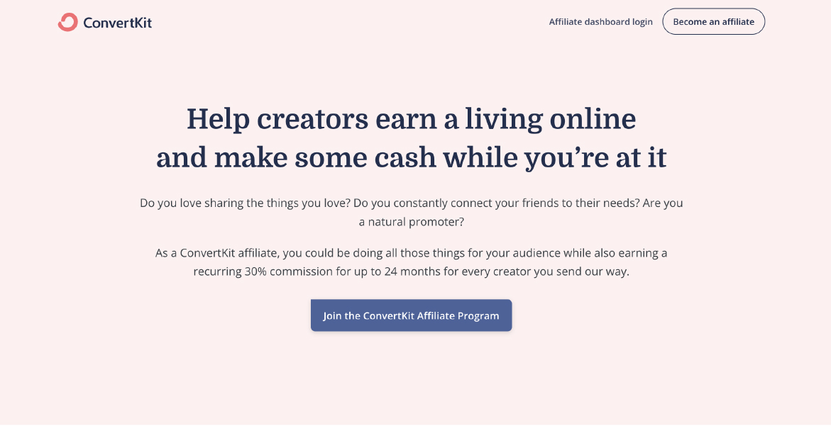 Convertkit offre una commissione a vita del 30% a ogni cliente o abbonato al webinar.