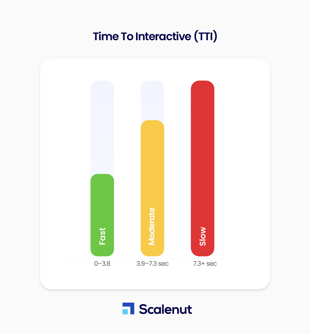 Time to Interactive è il tempo impiegato dal browser dell'utente per eseguire una prima semplice richiesta dopo aver avviato la tua pagina. Ciò include qualsiasi cosa, dal caricamento di script, alla raccolta di dati dal server e al rendering dell'HTML.