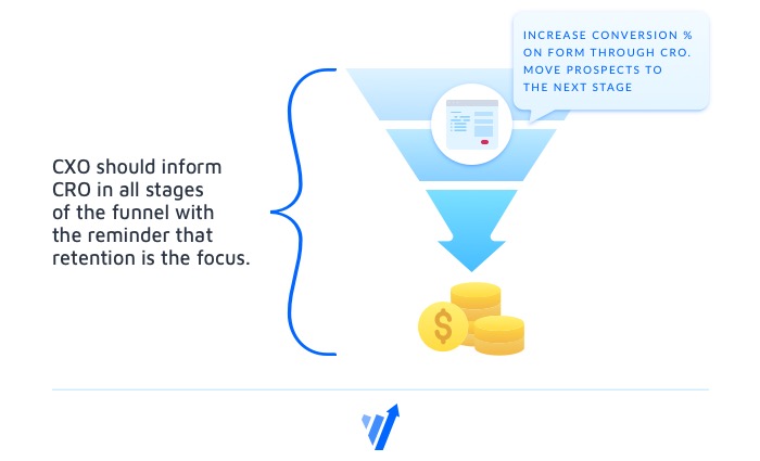 CXO è la misura più completa di come le azioni incentivate che induci gli utenti a intraprendere attraverso i tuoi sforzi CRO si traducono in fidelizzazione, entrate e profitti. Ed è comunque ciò per cui stai ottimizzando.