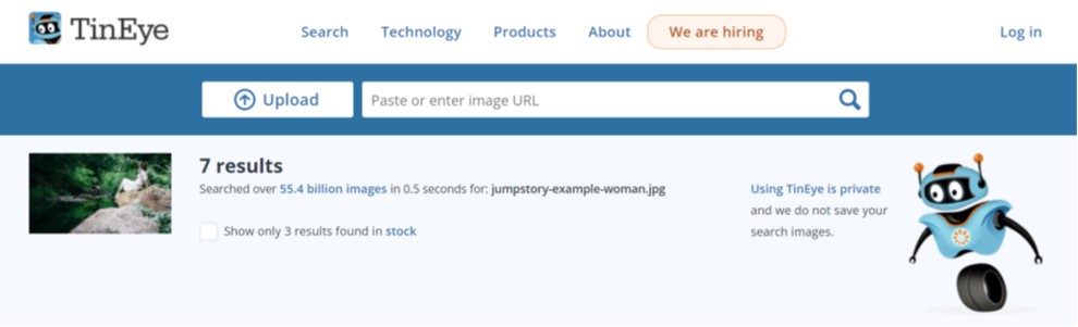 L'utilizzo delle piattaforme più grandi là fuori, come iStock o Shutterstock, può anche comportare l'utilizzo delle immagini che fanno tutti gli altri. Solo per provarlo, abbiamo acquistato una foto d'archivio casuale lì e abbiamo eseguito una ricerca inversa di immagini su di essa utilizzando Tineye. Ecco cosa abbiamo trovato: