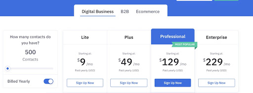Ci sono quattro piani tariffari con ActiveCampaign. Per un massimo di 500 contatti nel tuo elenco, devi pagare $ 9 al mese su base annuale e $ 15 al mese su base mensile. Questo è un vero furto. Sarai in grado di crescere con ActiveCampaign poiché il suo modello di prezzo rimane economico rispetto ad altri. Riceverai una prova gratuita fino a 100 contatti attivi per due settimane.