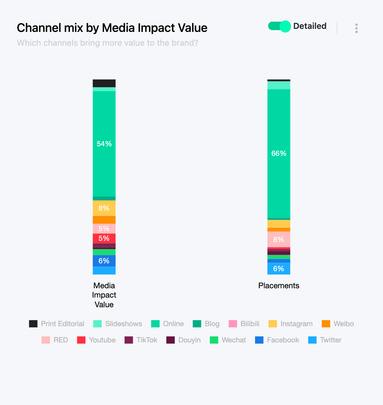 Questa è un'altra area in cui avere una misurazione standardizzata fa la differenza. Utilizzando Media Impact Value (MIV), il tuo mix vocale può essere suddiviso in modo significativo. Grazie a queste informazioni, puoi massimizzare il marketing del tuo marchio di abbigliamento sportivo incanalando le risorse nel mix di voci che generano il maggior ROI .