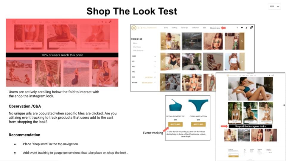 Darrell Williams di Growth Hack Guides ha eseguito un test A/B per un marchio leader di costumi da bagno che aveva aggiunto il proprio catalogo di prodotti Instagram al proprio sito.