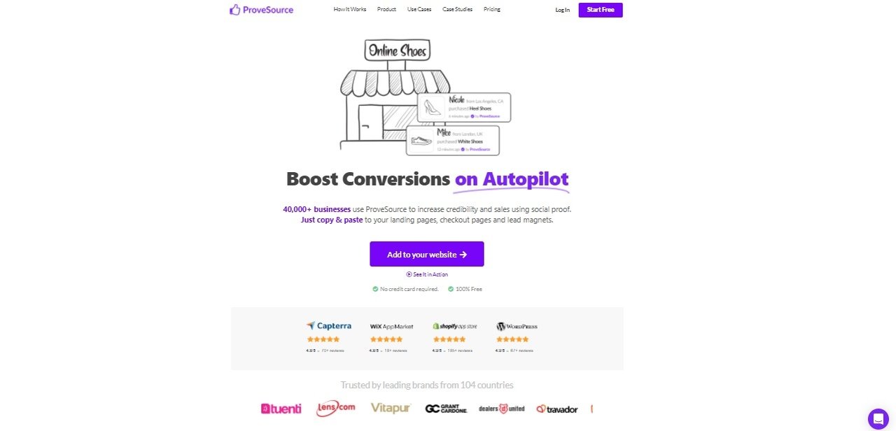 Tuttavia, ProveSource impressiona con il suo logo e fornisce la recensione, citazioni efficaci e informazioni sull'importanza dell'idea di prova sociale.
