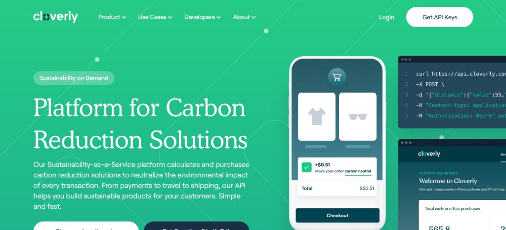 Pertanto, non sorprende che un marchio come Cloverly abbia scelto il verde come colore principale. È la scelta perfetta per la piattaforma, che aiuta le aziende a calcolare e acquistare soluzioni di riduzione delle emissioni di carbonio.