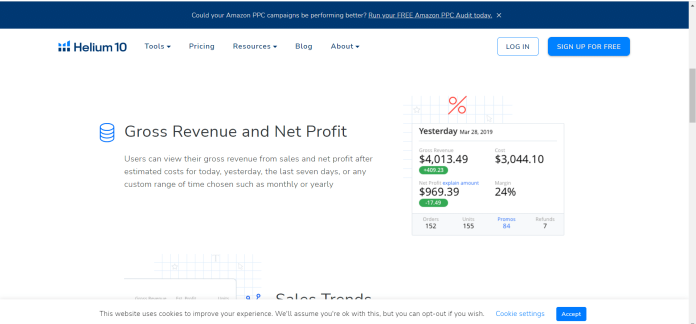 Il prossimo nella nostra lista dei desideri è Helium 10, una piattaforma software di contabilità. I profitti sono uno strumento software di contabilità basato su Helium 10. Compila più punti dati rilevanti per i venditori Amazon per migliorare i loro profitti. Gli strumenti, che sono i software di contabilità Amazon più utilizzati, sono ricchi di funzionalità che possono aumentare le dimensioni delle piccole imprese. Queste funzionalità includono la ricerca per parole chiave, i dati relativi alle vendite di Amazon Marketplace, gli account online e la compatibilità con le app mobili.