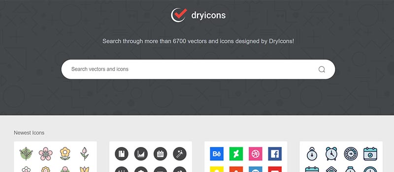 Cerca tra oltre 6.700 vettori e icone gratuiti su Dryicons. A differenza di altri siti Web nel nostro elenco, Dryicons non dispone di una vasta libreria di vettori. Ma offre grafica vettoriale e icone di alta qualità per designer e sviluppatori. A parte questo, sono anche design molto particolari, quindi probabilmente troverai tutto ciò di cui hai bisogno dal sito web. Ancora più importante, il sito è semplice da esplorare. Basta digitare una parola chiave nella barra di ricerca e verranno visualizzate le pagine dei risultati. Dryicons consente il download gratuito e l'uso di disegni vettoriali, ma è necessaria l'attribuzione dell'autore.