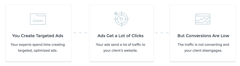 これは、クライアントの広告を設定および管理する代理店にとってはおなじみのシナリオです。 クライアントのウェブサイトにトラフィックを集めることはできますが、その後の結果は期待外れです。 また、広告のクリックも重要ですが、クライアントはコンバージョン、リード、収益などの実際の結果に関心があります。