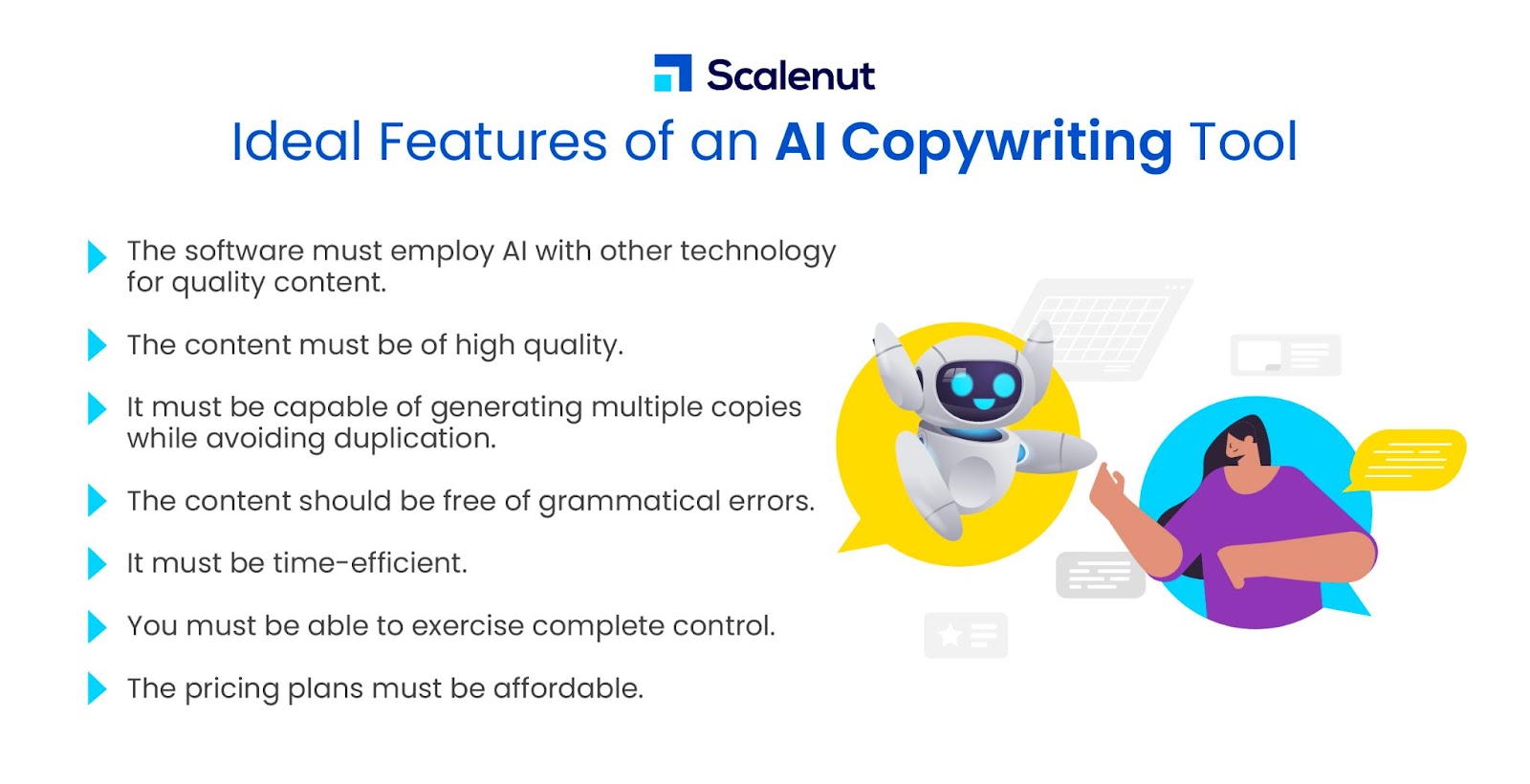 AIコピーライティングツールの理想的な機能には、次のものが含まれている必要があります。