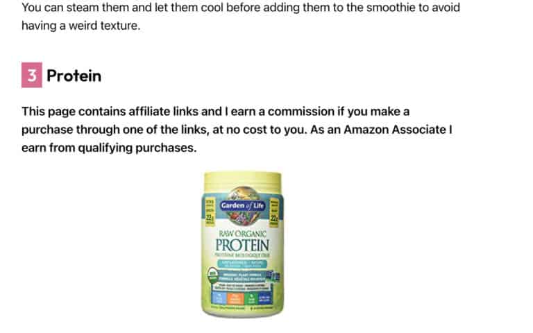 免責事項の追加は、投稿のどこかにアフィリエイト リンクの前に次のようなメモを入れるだけです。