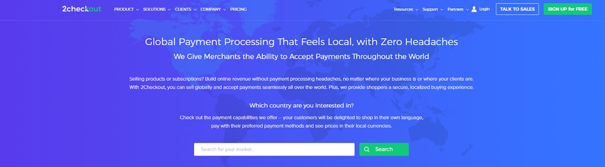 2Checkoutは2006年から存在しており、現在180か国以上で利用できます。 このソリューションは、オンラインで支払いを処理し、ビジネスの財務を管理し、高度なダッシュボードを備えています。
