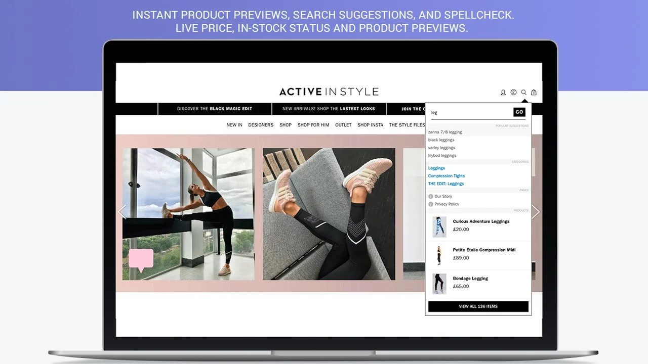 インスタント検索ウィジェット:高度なオートコンプリート、「もしかして」、キーワードベースのリダイレクトなど。