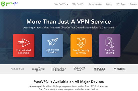 PureVPN は最先端のテクノロジーを採用してインターネット トラフィックを暗号化し、仕事とアクセシビリティのためのオンライン セキュリティを強化します。 PureVPN を使用すると、オンライン アクティビティが常に保護されるため、オンラインでの行動を誰が追跡しようとしているのかを心配する必要はありません。 トップVPNにランクされています.