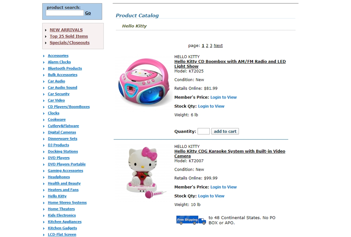 Megagoodsは、ドロップシッピングまたはフルフィルメントサービスを強力にサポートする電子およびビデオゲーム製品の販売代理店です。 製品のリストは、カーオーディオ、ミュージカル&カラオケ、さらにはハローキティなどの詳細なニッチにうまく分類されています。