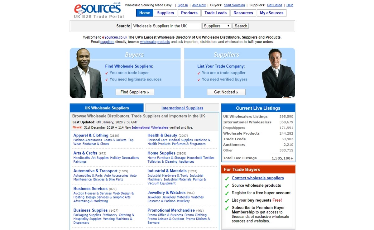 英国の別の卸売会社であるeSourcesは、多くのドロップシッパーやサプライヤーがビジネスを行うためにやってくる信頼できるディレクトリです。