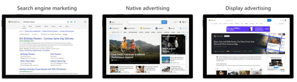 Microsoft Bing では、有料検索広告、ネイティブ広告、ディスプレイ広告を提供しています。