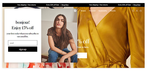 Aerosoles のこの例は、閲覧放棄メールと販売メールを組み合わせたものです。 この 2 つのアプローチにより、このメールは非常に魅力的なものになるはずです。 セールを含め、オファーは閲覧放棄キャンペーンのコンバージョン率を向上させるのに役立ちます。 しかし、それは必ずしも 1 つを含める必要があるという意味ではありません。