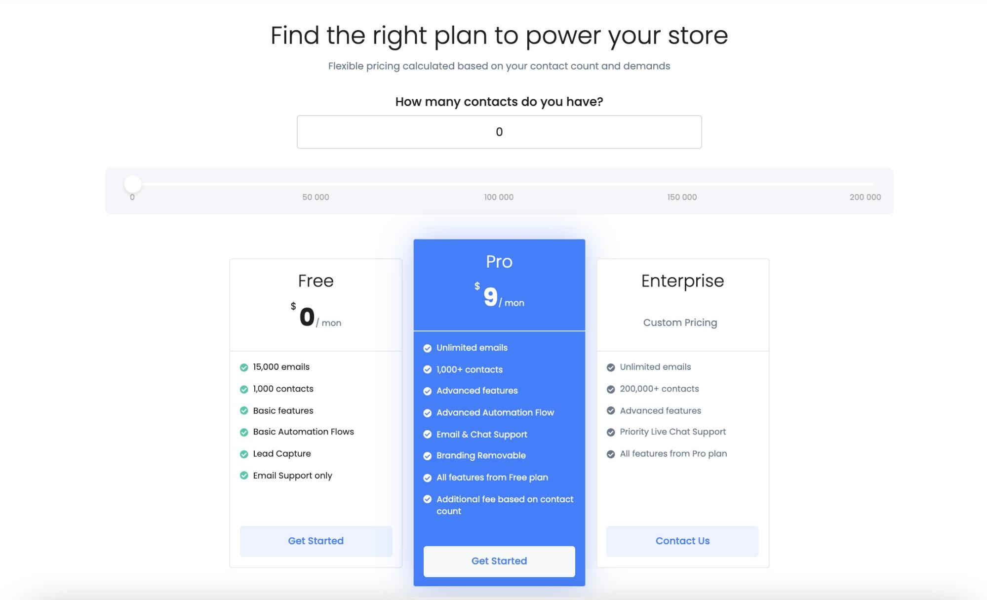 価格帯:有料プランは、2,000人の加入者で月額$ 10から始まり、1,000,000人の加入者で月額$3,650まで続きます。 Moosendは、「クレジット」を購入できる従量制プランも提供しています。 各クレジットは、送信できる1通のメールです。