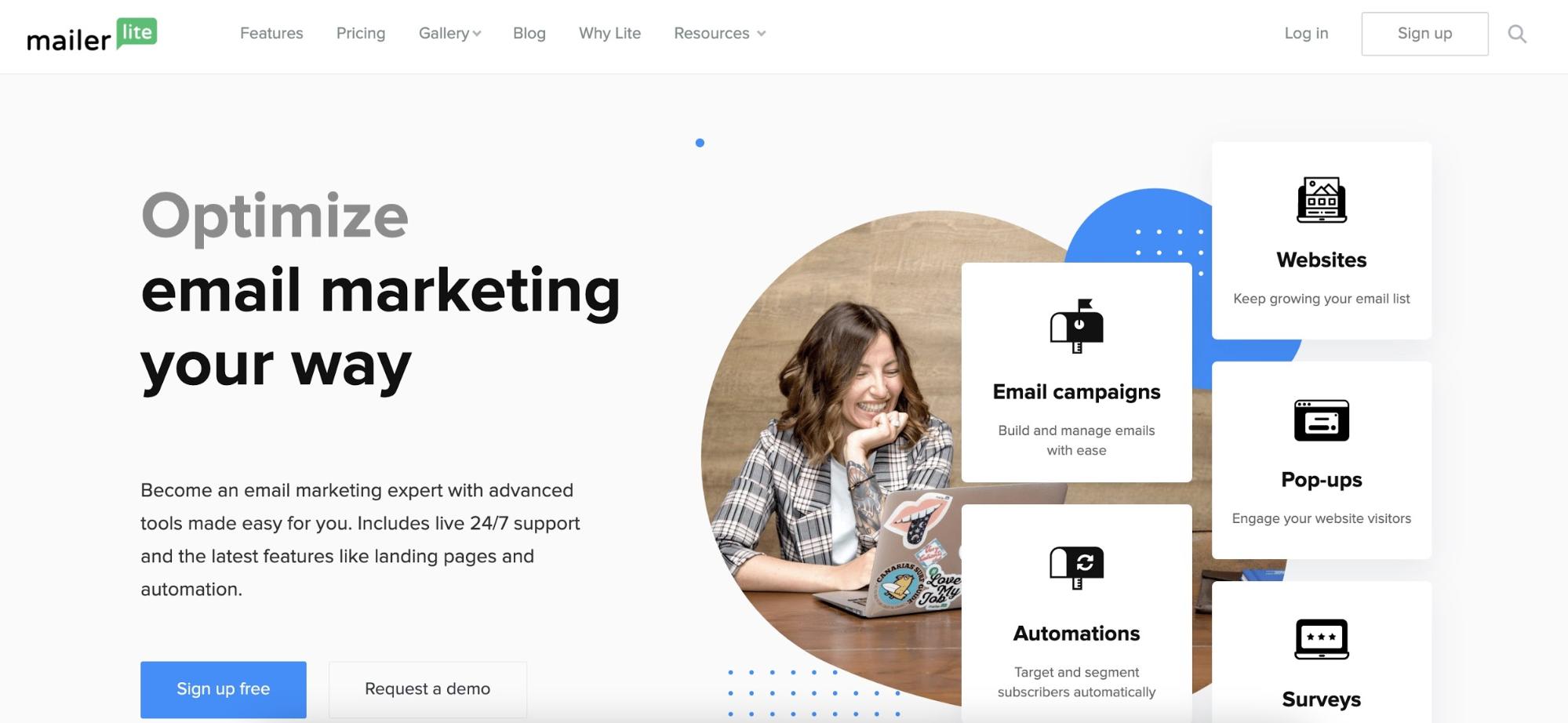 MailerLiteは、包括的な無料プランを備えた使いやすいメールマーケティングツールです。 無料のユーザーは、自動化された電子メールを送信し、セグメンテーションを使用してよりターゲットを絞ったキャンペーンを作成し、A/Bテストで各電子メールの可能性を探ることができます。 また、このツールを使用すると、メールにアンケートを簡単に追加できます。