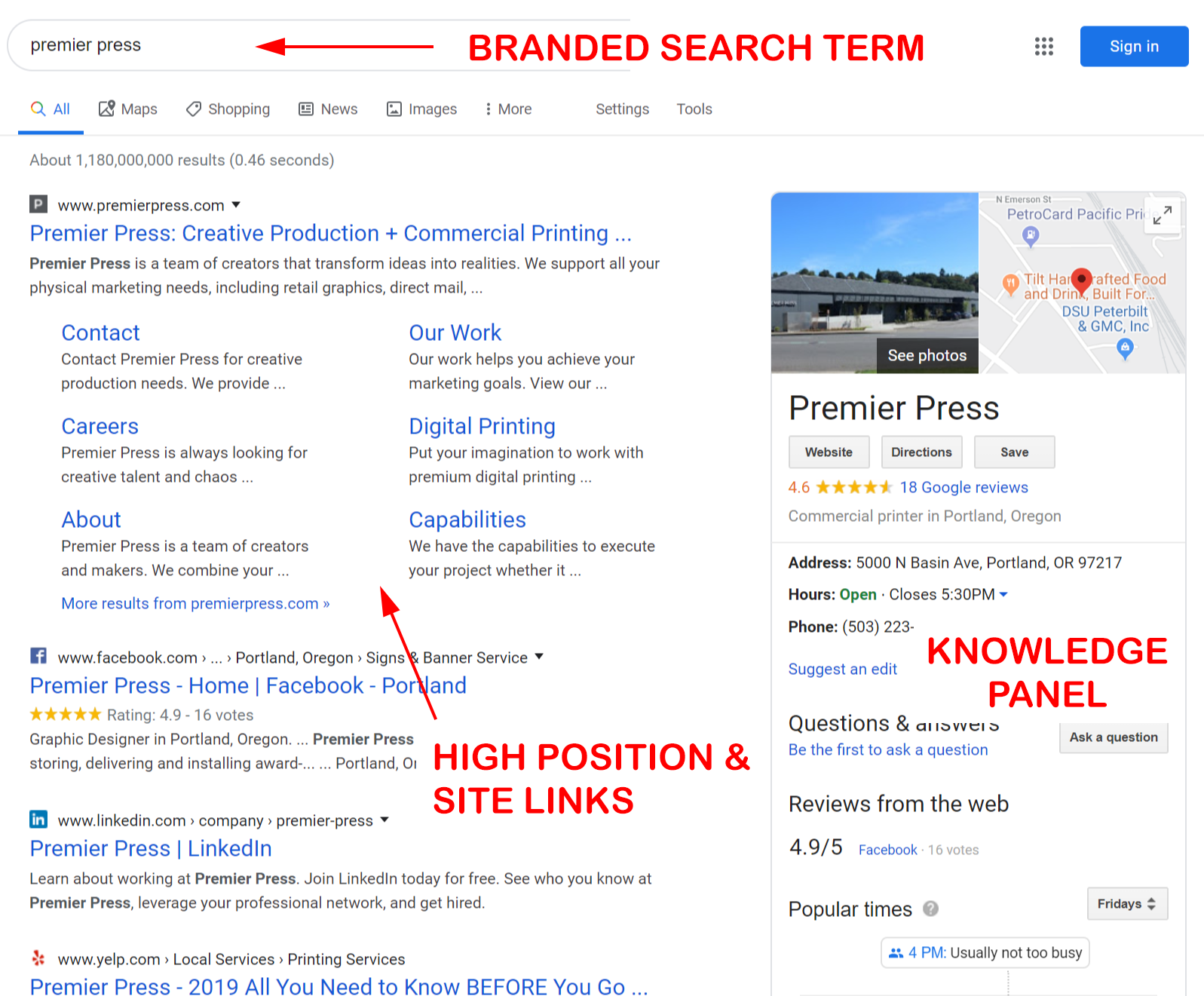 将来の顧客があなたに紹介されるとき、彼らは通常、あなたの会社名を検索するブランド検索を行い、連絡する前にあなたについて少し学びます。 彼らはすでに旅の検討段階に入っていますが、それでも信頼を築く必要があります。