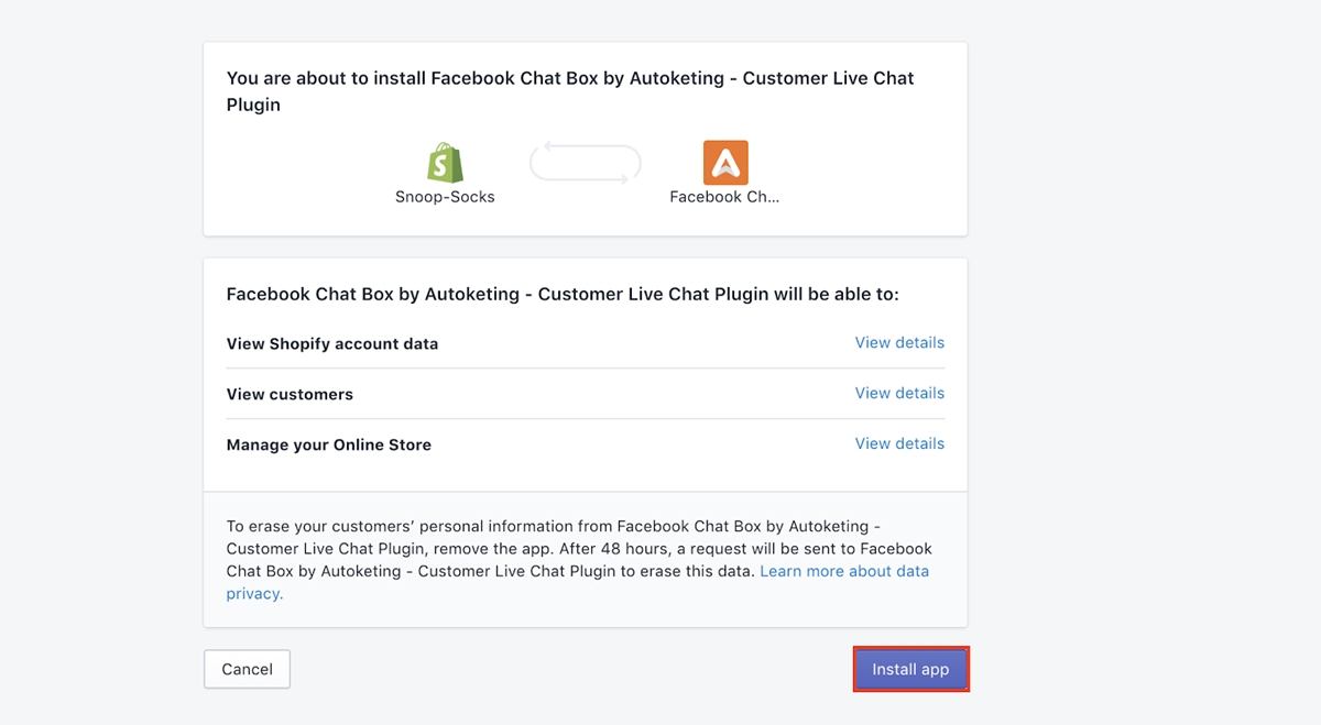 次に、[ Add App ]をクリックし、[ Install App ]をクリックします。