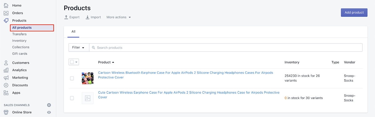 Shopifyストアにインポートする製品については、[ストアにImport to store ]ボタンをクリックします。
