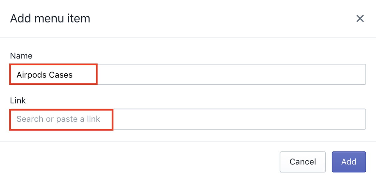 Titleボックスに、作成するカテゴリの名前を入力します。 たとえば、店舗でAirPodsケースを販売している場合は、airpods casesを使用してカテゴリに名前を付けることができます。