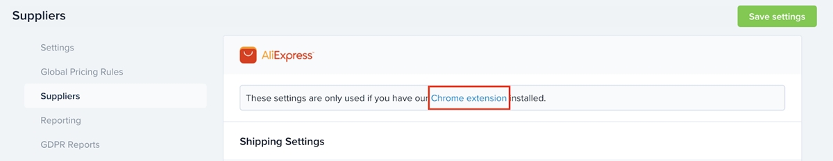 設定の[ Supplier ]セクションで、 Chrome extensionをクリックします。