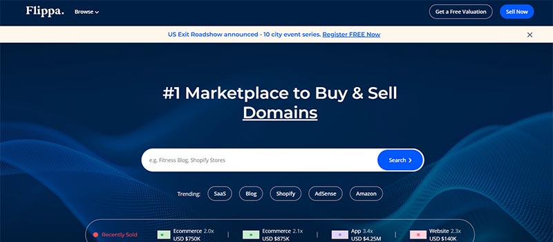 2009 年 6 月に設立された Flippa は、デジタル ビジネスの売買を行う優れたマーケットプレイスです。 Flippa では、e コマース ストア、ソーシャル メディア アカウント、SaaS ビジネス、モバイル アプリケーション、ブログ、オンライン ビジネスを見つけることができます。