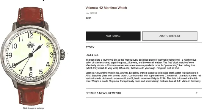 J Peterman Company は、この時計のような製品の信頼性と品質を強調しながら、販売する製品についての物語であるユニークで面白いデザインを持っています.